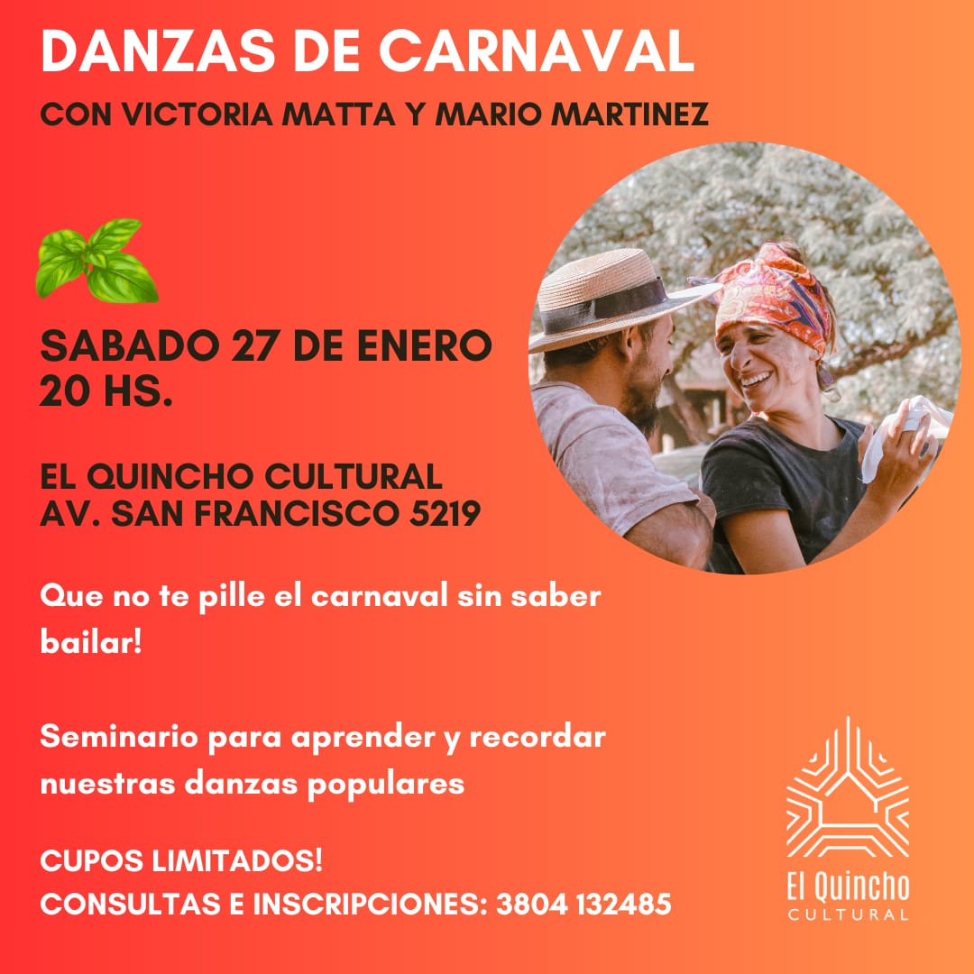 InicioDanzaAbrieron las inscripciones para el primer seminario de Victoria Matta y Mario... Related Posts Destacados «Rateros» se presentará en Antares Cultura - Leer más Cine «Parque Lezama» será proyectada en Espacio 73 Cultura - Leer más Destacados Kambalache realizará un encuentro interactivo con música y anécdotas Cultura - Leer más Danza El Quincho Cultural convoca a un taller coreográfico de danzas folklóricas argentinas Cultura - Leer más Destacados Billordo vuelve a La Rioja Cultura - Leer más Abrieron las inscripciones para el primer seminario de Victoria Matta y Mario Martinez del 2024 FacebookTwitterPinterestWhatsApp Este seminario de danzas populares se realizará el sábado 27 de enero a las 20 horas en el Quincho Cultural (Av. San Francisco 5219) con cupos limitados. Para consultas e inscripciones, escribir al 3804-122485. Artículo anteriorHéctor David Gatica ya tiene su sitio web oficialArtículo siguientePancho Cabral presenta «De este lado del viento» en Cosquín DEJA UNA RESPUESTA Cancelar respuesta Comentario: Por favor ingrese su comentario! Nombre:* Por favor ingrese su nombre aquí Correo electrónico:* ¡Has introducido una dirección de correo electrónico incorrecta! Por favor ingrese su dirección de correo electrónico aquí Sitio web: Guardar mi nombre, correo electrónico y sitio web en este navegador la próxima vez que comente. Δ Cultura FacebookInstagramTwitterYoutube Latest Posts Destacados «Rateros» se presentará en Antares Cultura - 12 marzo, 2026 Leer más Cine «Parque Lezama» será proyectada en Espacio 73 Cultura - 11 marzo, 2026 Leer más Destacados Kambalache realizará un encuentro interactivo con música y anécdotas Cultura - 10 marzo, 2026 Leer más