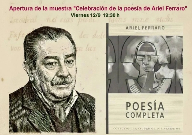 La Biblioteca Popular Mariano Moreno anunció para este viernes 12 de septiembre, a las 19:30, la apertura de la muestra “Celebración de la poesía de Ariel Ferraro”, en el marco del centenario del nacimiento del poeta.