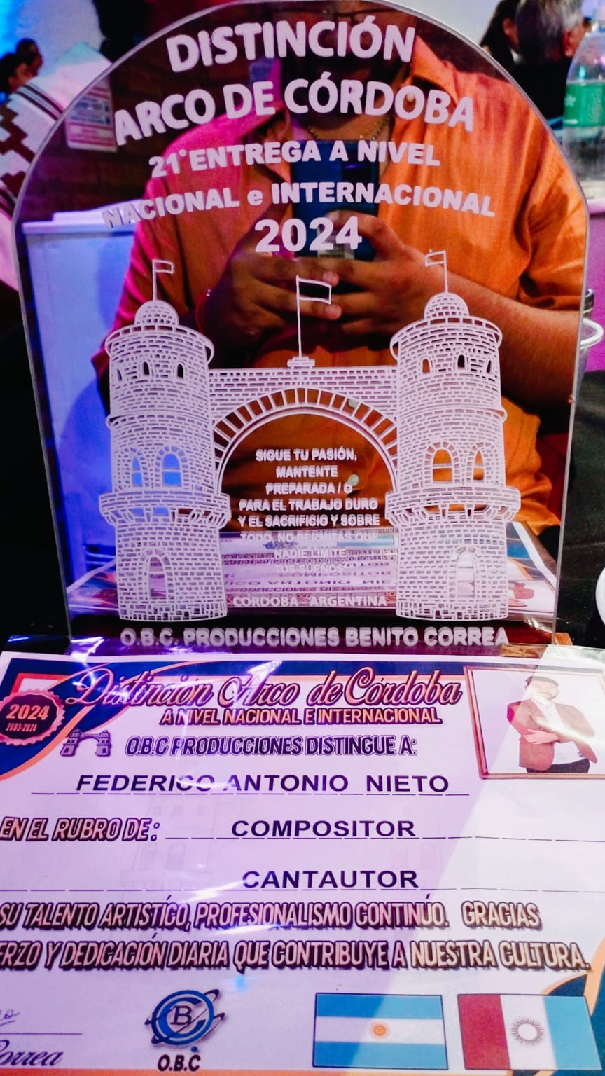 Federico Nieto, artista riojano, recibio este pasado domingo la distinción a nivel nacional e internacional del Arco de Córdoba 2024.