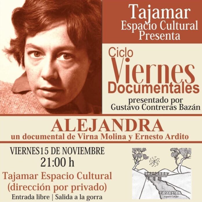 Esta vez proyectarán «Alejandra», un documental de Virna Molina y Ernesto Ardito que, a partir de una mirada intimista, narra la vida de la poeta Alejandra Pizarnik.