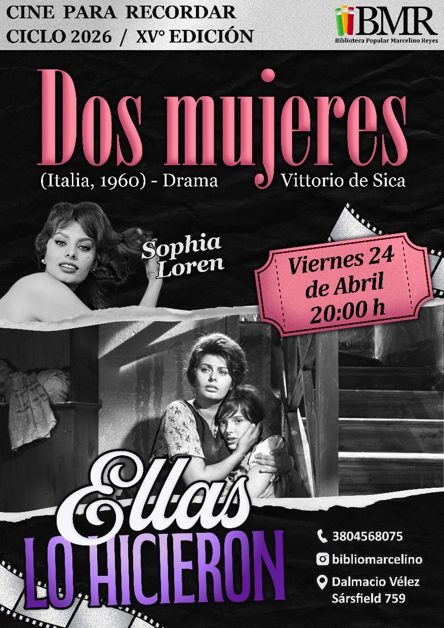 La Biblioteca Popular Marcelino Reyes invita a una nueva función del ciclo “Cine para recordar”, que en su edición 2026 continúa acercando clásicos del cine internacional al público local. En esta oportunidad, se proyectará la película “Dos mujeres”, dirigida por el reconocido realizador italiano Vittorio De Sica.