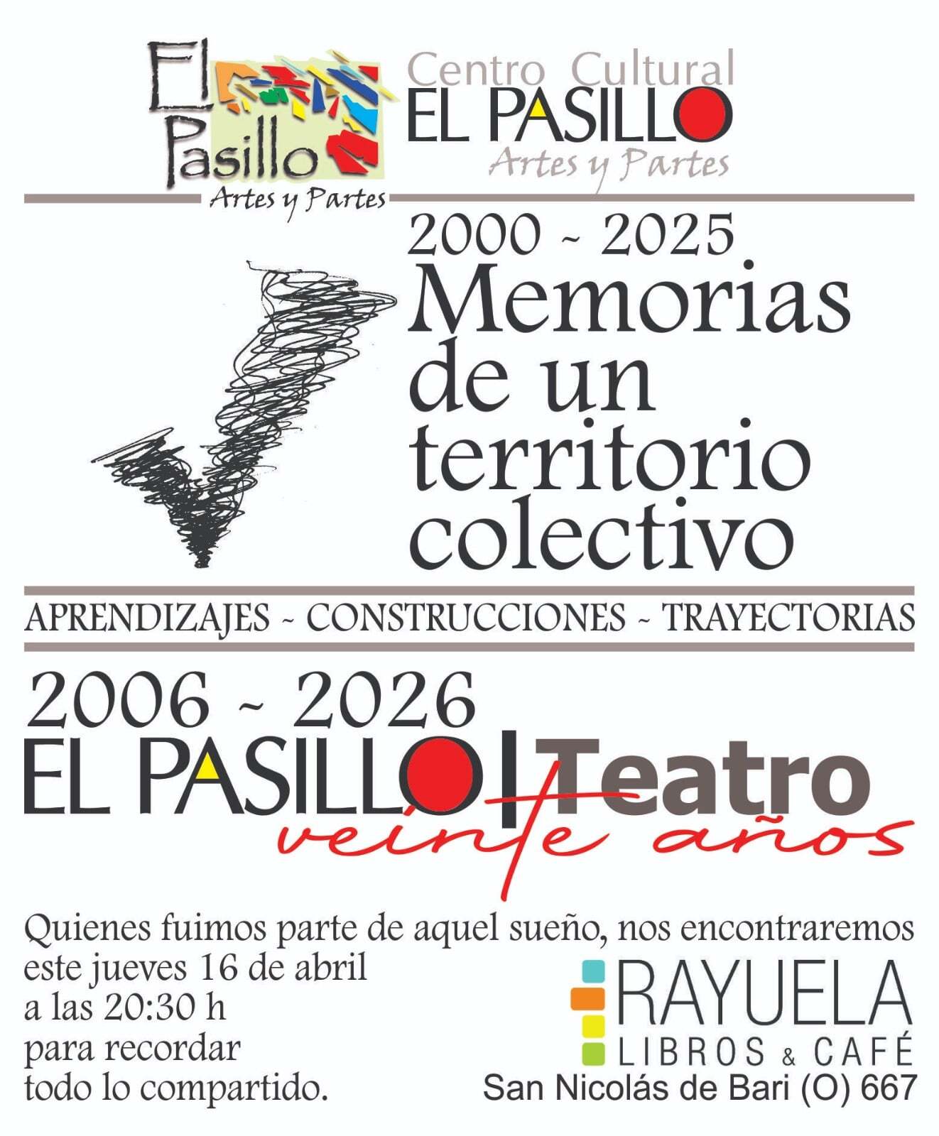 Febrero de 2026. Un llamado telefónico de Pano me recuerda que este año “El Pasillo Teatro” cumple 20 años. Al mismo tiempo, ambos advertimos que aquella idea llamada “El Pasillo” habría cumplido 25. Sin embargo, en 2025 nadie dijo nada: no lo recordamos en redes ni en ningún otro espacio. Esta vez, en cambio, había un motivo para hacerlo.
