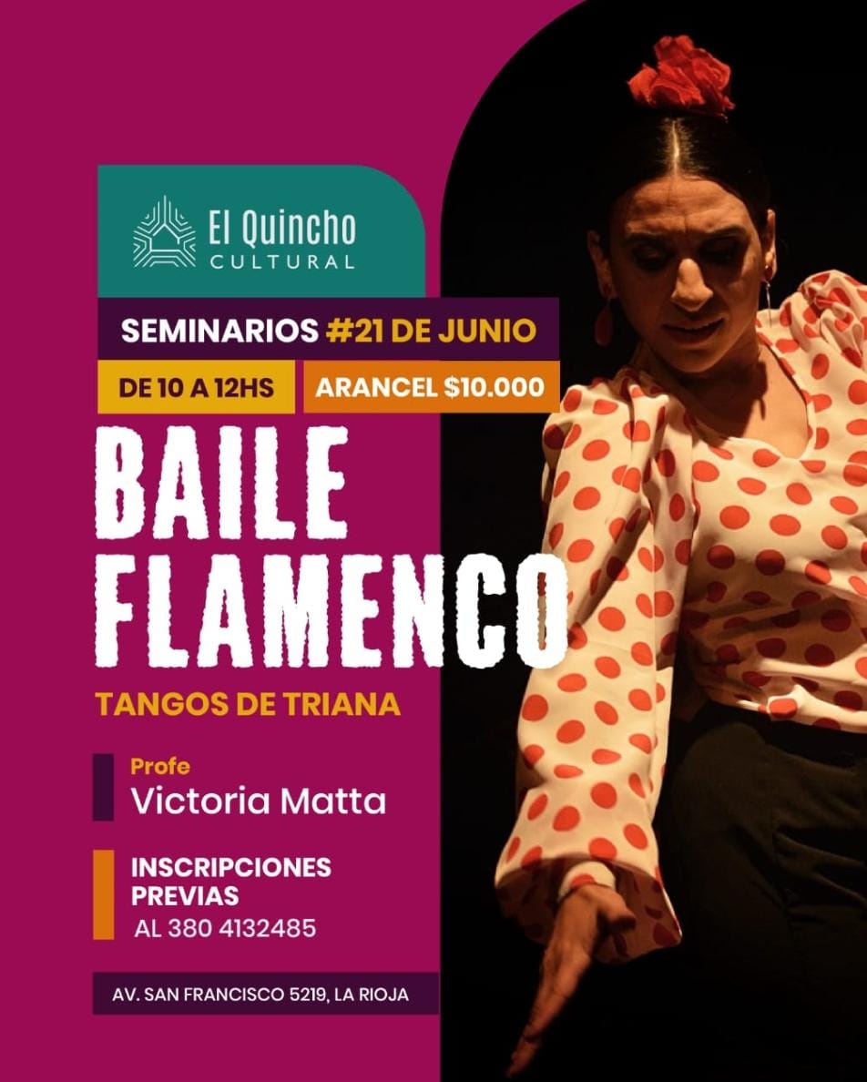 El sábado 21 de junio, El Quincho Cultural será escenario de una jornada intensa y vibrante de danza con dos seminarios especialmente pensados para quienes desean acercarse o profundizar en expresiones tradicionales del arte en movimiento: el baile flamenco y la zamba.