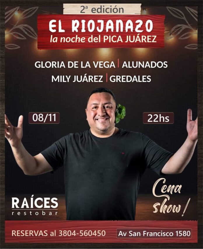 Será el próximo viernes 8 de noviembre, a partir de las 22hs, en el Resto Bar «Raices» (Av. San Francisco 1580).