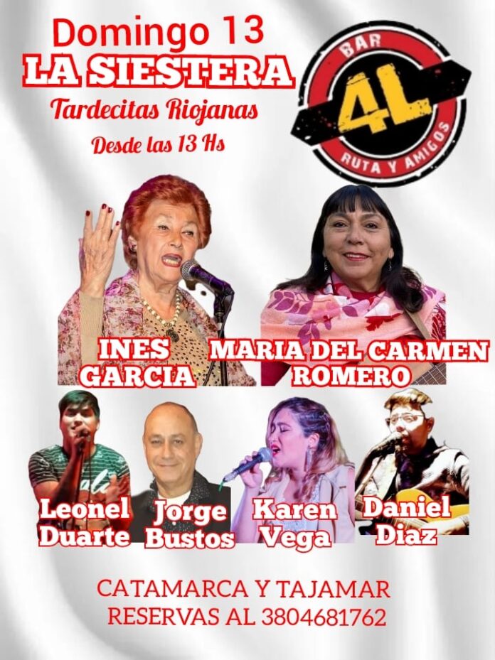 Este 13 de julio, a partir de las 13 horas, se vivirá una nueva edición de La Siestera – Tardecitas Riojanas, un encuentro que combina música, tradición y sabores locales en el Bar 4L, ubicado en la esquina de Catamarca y Tajamar.