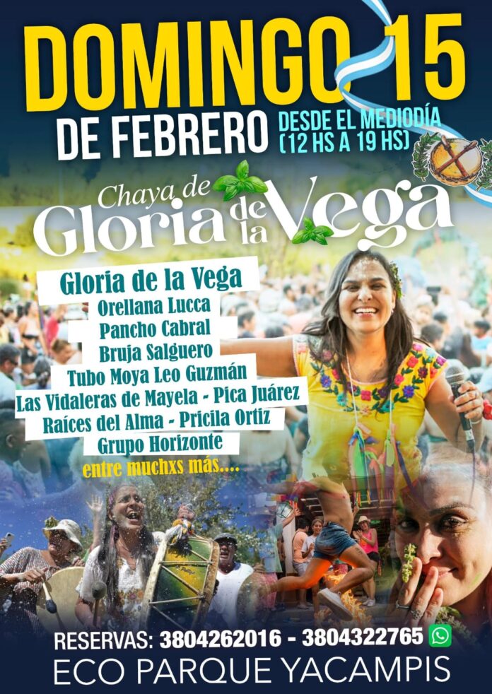 El encuentro se desarrollará desde el mediodía y hasta las 19 horas, con una propuesta pensada para compartir en familia y con amigos, en un entorno natural que será escenario de uno de los festejos más esperados del calendario cultural riojano. La Chaya de Gloria de la Vega reunirá a destacados artistas y agrupaciones que forman parte del cancionero y la identidad popular.