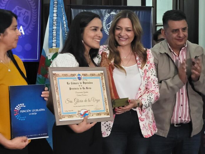«Estoy muy emocionada. Todo lo que contiene el nombre de Victoria Romero para mi es muy trascendente porque representa a todas las mujeres riojanas», señaló Gloria minutos antes de ser homenajeada.