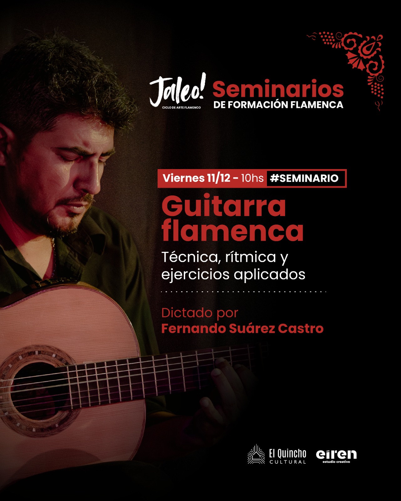 El viernes 12, de 10 a 12, Fernando Suárez Castro encabezará el Seminario de Guitarra Flamenca, que abordará técnica, rítmica, falsetas y cierres tanto para acompañamiento como para toque solista.