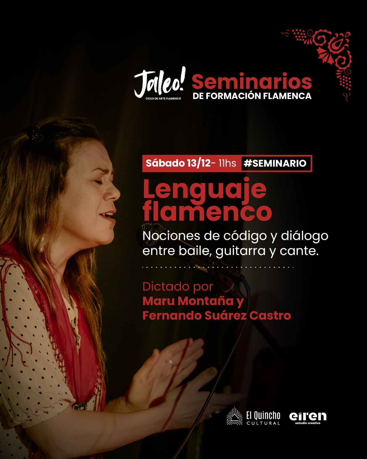 El sábado 13, de 11 a 13, se dictará el Seminario Integral de Flamenco, coordinado por Maru Montaña y Suárez Castro, centrado en los códigos de comunicación entre baile, guitarra y cante.