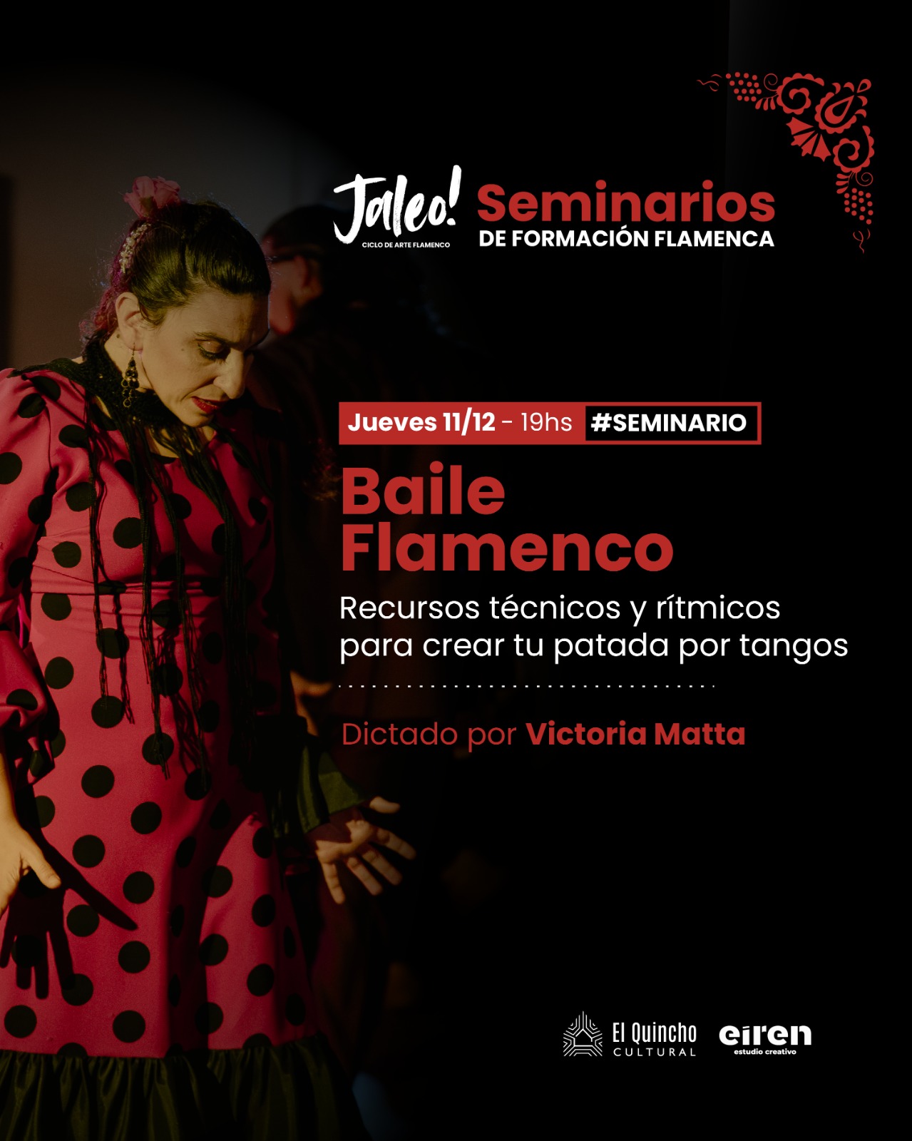 El jueves 11, de 19 a 21, se realizará el Seminario de Baile Flamenco orientado a los tangos, a cargo de Victoria Matta, con foco en técnica, juegos rítmicos y creación personal.
