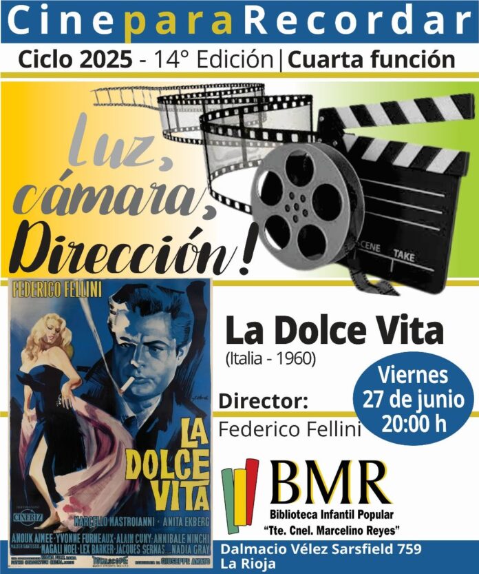 Bajo el lema “¡Luz, cámara… dirección!”, la propuesta de este año rinde homenaje a grandes cineastas. En esta oportunidad, se proyectará una de las obras más influyentes del séptimo arte, protagonizada por Marcello Mastroianni, Anita Ekberg y Anouk Aimée.