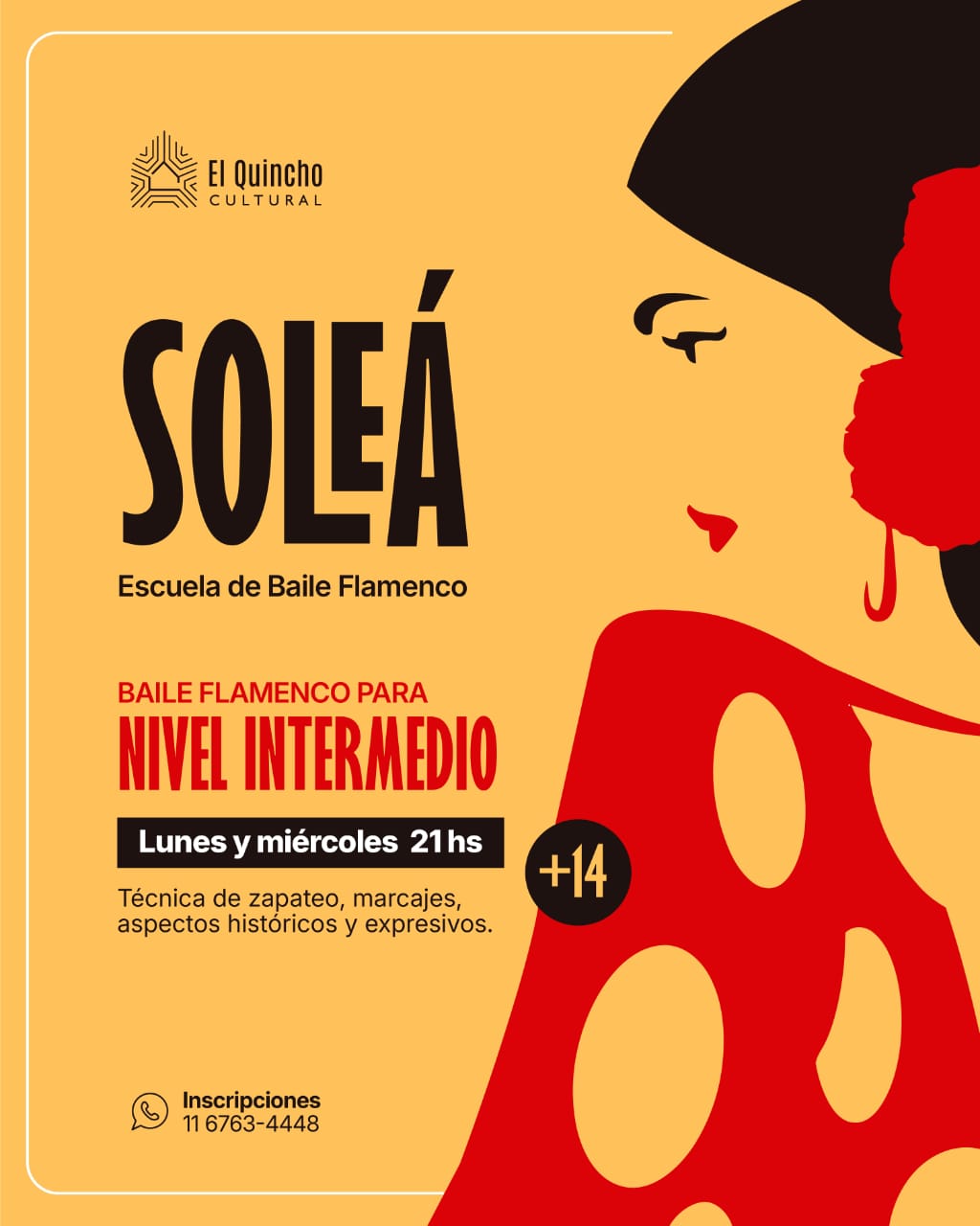 En tanto, el nivel intermedio también para mayores de 14 años tendrá lugar los lunes y miércoles a las 21, con trabajo específico en técnica de zapateo, marcajes y abordaje de aspectos históricos y expresivos del flamenco.