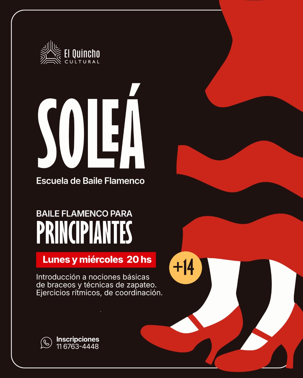 En marzo comenzará un nuevo ciclo de formación en danza flamenca con el nacimiento de Soleá, una propuesta que funcionará en El Quincho Cultural y estará destinada a niñas, niños, jóvenes y personas adultas.