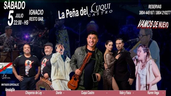 Este sábado 5 de julio a las 22 se realizará La Peña del Cuqui Castro en Ignacio Resto Bar. El evento reunirá a una destacada grilla de artistas locales con propuestas que van desde el folklore tradicional hasta el tango y la música popular.