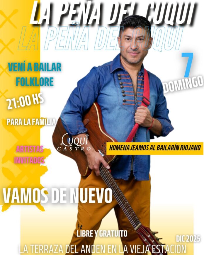 La Peña del Cuqui Castro regresará este domingo 7 de diciembre con una nueva edición abierta a toda la familia. El evento, anunciado como una propuesta libre y gratuita, se realizará desde las 21 en la Terraza del Andén, en la Vieja Estación.