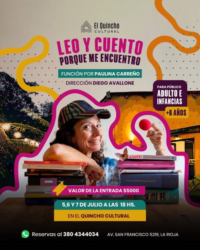Los días 5, 6 y 7 de julio, El Quincho será escenario de “Leo y cuento porque me encuentro”, una propuesta de narración oral teatral creada e interpretada por Paulina Carreño. El espectáculo está dirigido tanto a público adulto como a infancias desde los 6 años, y se presenta como una invitación a soñar y redescubrir el placer de la lectura.