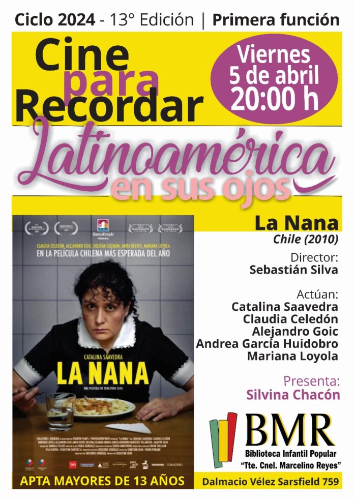 El próximo viernes 5 de abril comienza la 13° Temporada del ciclo “Cine para Recordar” que viene desarrollándose en la Biblioteca Infantil Popular “Tte. Cnel. Marcelino Reyes. Este año estará dedicada a películas pertenecientes a países de nuestra región, bajo el título “Latinoamérica en sus ojos”.