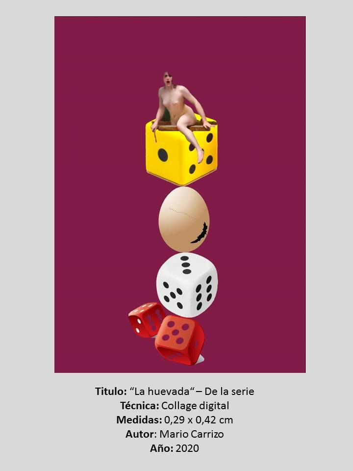 Durante la pandemia, cuando el acceso a materiales se volvió limitado, Carrizo encontró en lo digital un nuevo camino creativo. Así nació la serie La huevada. “En ese momento no se podía salir, entonces dije: tengo que buscar otras cosas que sean diferentes. Y a partir de una obra empezaron a surgir otras y hasta la actualidad sigo trabajando con collage digital”, contó. Parte de esa producción ya está preparada para una futura muestra, que se concretaría a fines de este año o directamente en 2026.