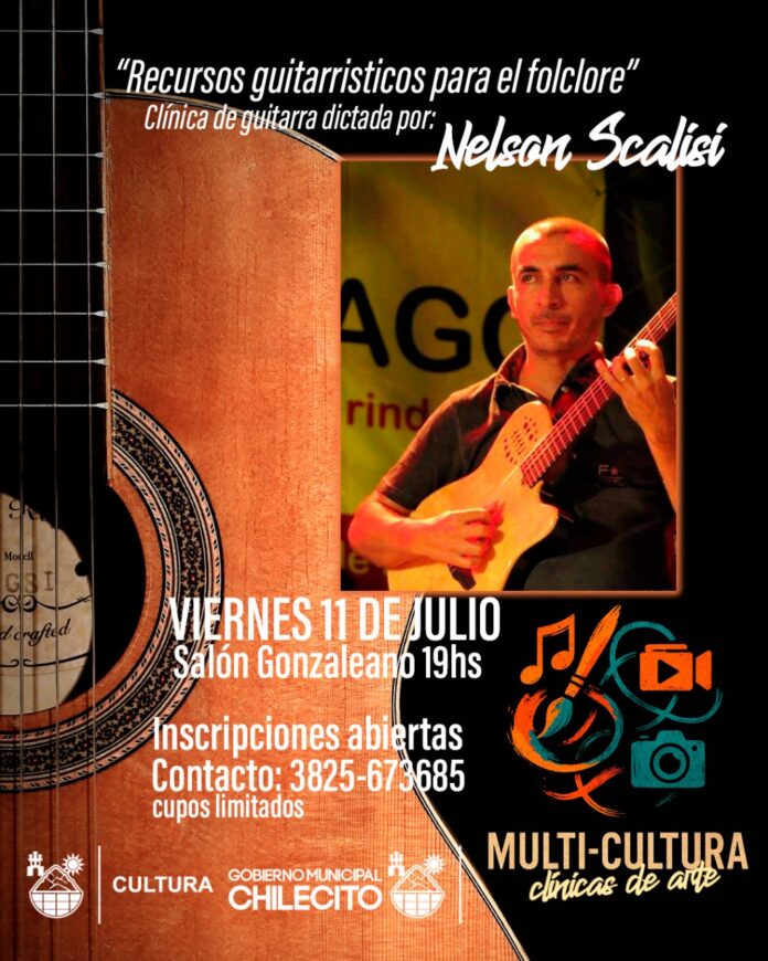 Este viernes 11 de julio a las 19 en el Salón Gonzaleano, se dictará la clínica de guitarra “Recursos guitarrísticos para el folclore”, a cargo del destacado músico Nelson Scalisi.