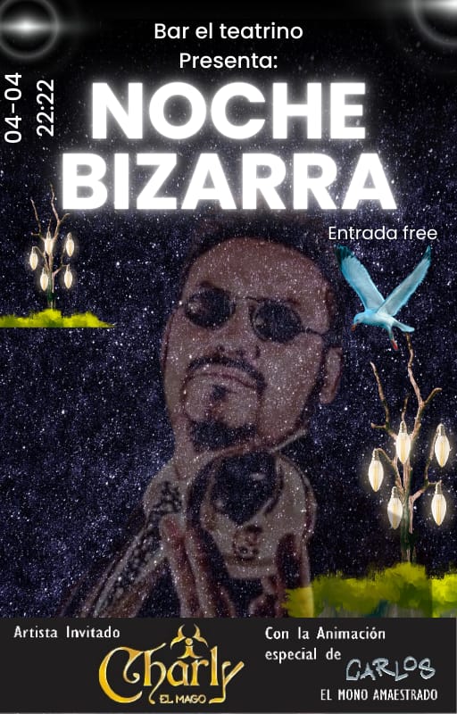 El próximo viernes 4 de abril, a partir de las 22:00 horas, Bar El Teatrino será escenario de una «Noche Bizarra», un evento que promete sorprender y divertir al público con un espectáculo fuera de lo común. La cita es en Paso de la Patria s/n, Barrio Cochangasta, con entrada libre y gratuita.