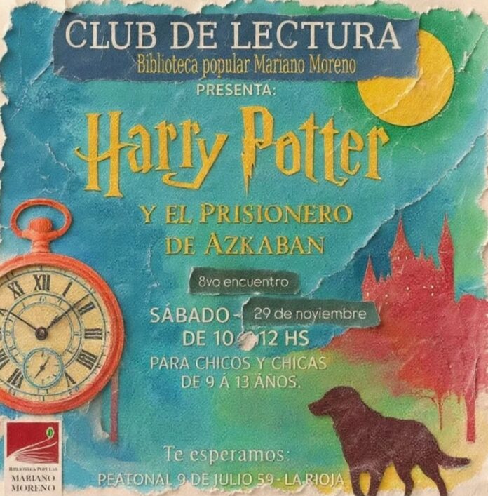El Club de Lectura de la Biblioteca Popular Mariano Moreno realizará este sábado 29 de noviembre un nuevo encuentro dedicado a la saga de Harry Potter, en esta ocasión centrado en el libro “Harry Potter y el prisionero de Azkaban”.