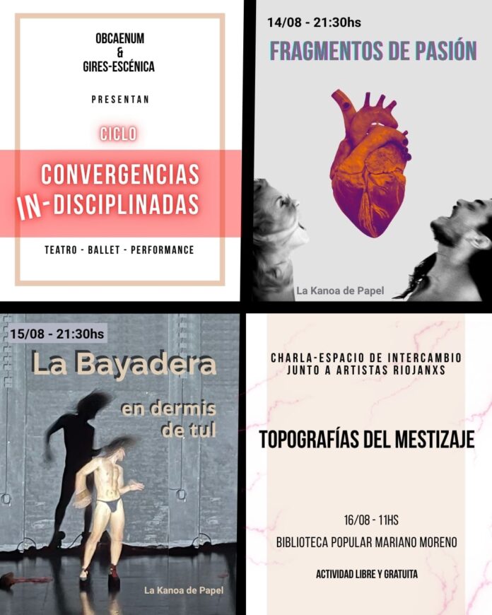 La Rioja será escenario de un microciclo que reúne a dos colectivos artísticos de gran trayectoria: Obcaenum (San Juan) y Gires-Escénica (La Rioja). Bajo el nombre Convergencias in-disciplinadas, la propuesta invita a explorar y debatir sobre las artes escénicas del siglo XXI a través de funciones y un espacio de intercambio.