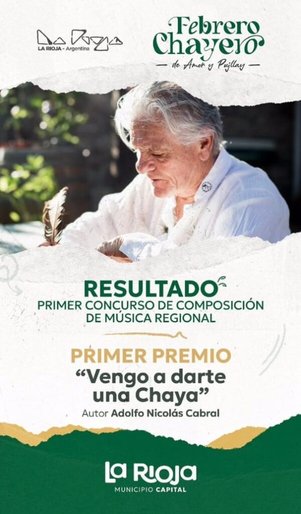 La obra del reconocido cantautor Pancho Cabral “Vengo yo a darte una chaya” obtuvo el primer premio en el Concurso de Composición de Música Regional.
