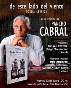 El cantautor y poeta riojano, Pancho Cabral, se presentará el viernes 23 de junio a las 20 horas. Será en la Casa de la Cultura -ubicada en San Martin al 533- en la hermana provincia de Catamarca.