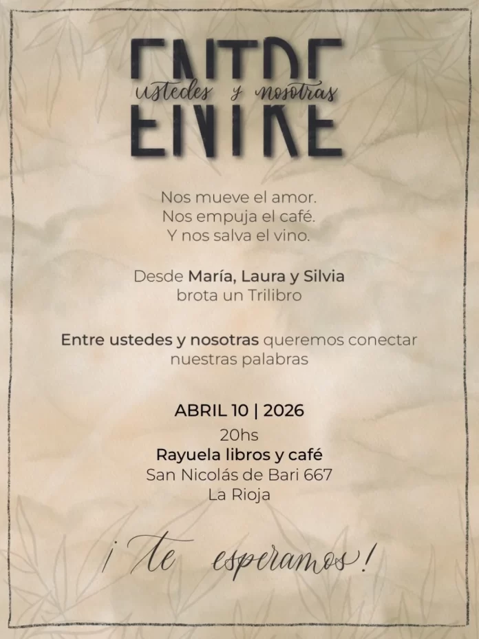 Este viernes 10 de abril se realizará en la ciudad de La Rioja la presentación del libro “Entre ustedes y nosotras”, una obra colectiva de las autoras Laura Busleiman, Silvia Montes y María Fuentecilla.