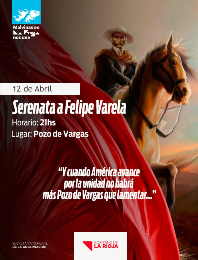 Desde la Secretaría General de la Gobernación, ofrecerán este martes 12 de abril a las 21 horas, una serenata en honor a Felipe Varela