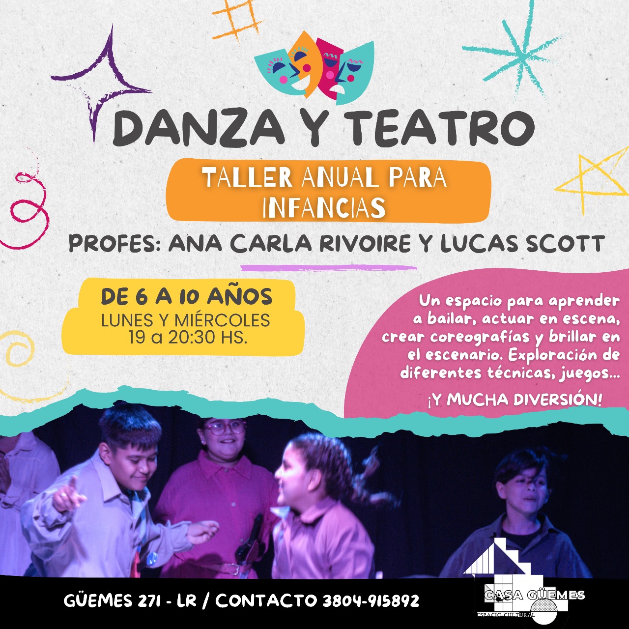 Desde marzo hasta julio, los niños y niñas tendrán la oportunidad de sumergirse en el mundo del arte escénico a través del Taller Anual de Danza y Teatro para Infancias. La propuesta está diseñada para que los más pequeños descubran y exploren sus habilidades artísticas en un ambiente lúdico y enriquecedor.